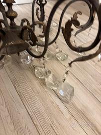 Vendo elegante lampadario vintage/classico in ottone lavorato, con pendenti in vero cristallo sfaccettato.