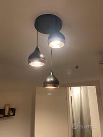 Bellissimo lampadario nero con finiture color Ottone Fili regolabili