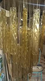 lampadario a cascata in vetro di murano ambrato