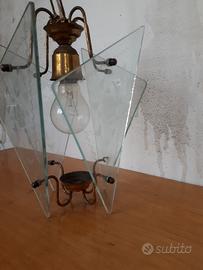 lampadario modernariato in vetro e ottonato - anni 50-60 dispongo anche di altri lampadari stessa epoca - (vedi su mio profilo venditore altri articoli in vendita)