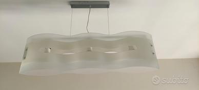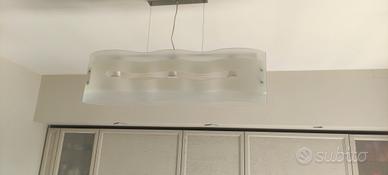 bellissimo lampadario in vetro tre attacchi colore chiaro con vetro sabbiato ottime condizioni sia da ambiente cucina che salone non esitate a contattarmi misure 90 cm