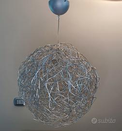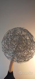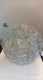 Lampadario a sfera tipo Fil de Fer di Catellani&Smith in filo di alluminio modellato ed intrecciato illuminata all'interno da minuscole lampadine.