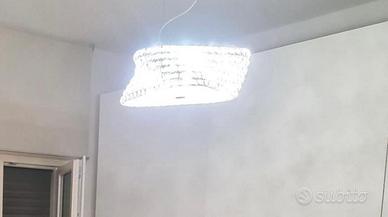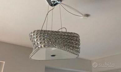 Vendo elegante lampadario moderno in cristallo, dal design ondulato e raffinato. La struttura cromata e i cristalli donano brillantezza e luminosità a qualsiasi ambiente, ideale per salotto, sala da pranzo o camera da letto.