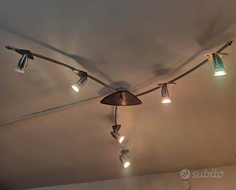 Vendo elegante lampadario da soffitto in acciaio inox con tre bracci curvi e 6 faretti orientabili.