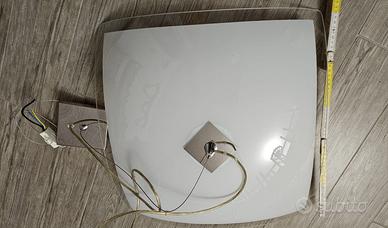 Lampadario moderno con un design unico. - Struttura in acrilico/vetro trasparente. - Dettagli in acrilico/vetro bianco.