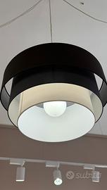 lampadario moderno in tessuto e metallo, dal design elegante e contemporaneo.