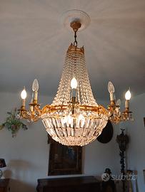 Grande lamoadario mongolfiera in cristallo e bronzo dorato composto da 10+4 luci. Anni 1960/70, ottima manifattura. Misure: diametro 90, altezza 110 cm. Ritiro a mano