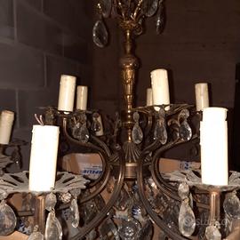 vendo lampadario 15 punti luce in metallo e cristalli con impianto elettrico da revisionare