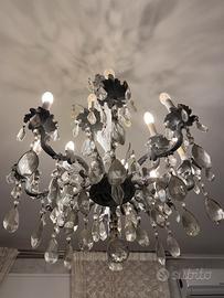 Vendo lampadario vintage in ottone pieno rivisitato in stile shabby chic. Dodici luci e gocce in cristallo. In perfette condizioni