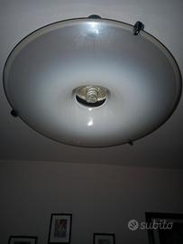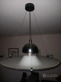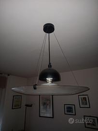 Per cambio arredamento, vendo lampadario della Muran Style costituito da un "disco" dalle forme sinuose in cristallo di Murano, retto da cavi in acciaio ed accompagnato da calotta portalampade con attacco E27. I prodotti della serie Muran Style sono una serie di arredamento sobrio e moderno caratterizzati da cristallo di tipo Murano dalla straordinaria lucentezza, brillantezza ed omogeneità, nulla a che vedere con i vetri di fabbricazione cinese attualmente in commercio. Il "disco" presenta un diametro di circa 67 cm e, nell'attuale regolazione dei cavetti sospensori in acciaio, è posto a circa 70 cm dal soffitto (tutto come in foto). Il lampadario è di alta gamma e di estrema qualità, pagato alcuni anni fa oltre 350,00 euro e si adatta ad arredamento moderno, pur mantenendo sobrietà e stile, anche in ambienti di grandi dimensioni grazie alla suo generoso diametro, offrendosi anche come eccezionale complemento di arredo. Non presenta alcun difetto, lesione o scheggiatura; il cristallo è di colore bianco chiaro lucido con bordino nero, mentre la calotta ed i cavetti di acciaio sono di colore nero opaco. A malincuore, vista l'estrema qualità e versatilità di arredamento, lo cedo a soli 25,00 euro, prima che vada in deposito in cantina.
