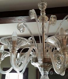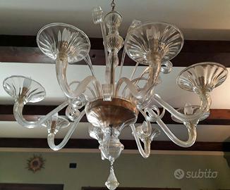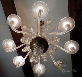 Vendo ad un prezzo molto buono uno splendido lampadario di Murano nel classico modello Seguso, acquistato negli anni 1970. Il lampadario, di foggia neoclassica è in vetro dorato trasparente, ad 8 bracci, ideale sia per una stanza grande, che una piccola. Misure: h. 100 cm (con catena, in dotazione, estensione massima 138 cm). Diametro: 83 cm. l lampadario è integro, e si fornisce con alcuni pezzi di ricambio. Per la fragilità dell’oggetto è necessario il ritiro di persona o con propria persona di fiducia.