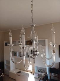 Lampadario DE MAJO 2599/KP6 in VETRO DI MURANO E METALLO CROMATO.