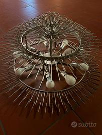 Vedi il fascino senza tempo del vetro artistico veneziano. Proponiamo maestoso lampadario in vetro di Murano. Un pezzo di design che unisce l'artigianalità classica a un'estetica moderna e scenografica. Caratteristiche Principali: Materiale: Vetro di Murano autentico di qualità. Design: Composto da numerosi elementi in vetro "a siringa" trasparenti, che creano una diffusione della luce calda e riflettente, tipica delle lavorazioni di pregio. Struttura: Telaio circolare in metallo robusto a più livelli, progettato per sostenere in sicurezza tutti i componenti in vetro. Illuminazione: Predisposto per più punti luce, garantendo un’illuminazione diffusa e di grande impatto ambientale. Condizioni: Ottime condizioni generali. Il lampadario è già stato accuratamente smontato: i vetri sono stati puliti e riposti con cura in scatole separate per garantirne l'integrità durante il trasporto. Perché sceglierlo: Perfetto per chi desidera arredare un ampio salone, una sala da pranzo o l'ingresso di un hotel/ristorante con uno, o più, pezzi autentici e di grande carattere. La struttura a più piani permette un gioco di luci unico nel suo genere. Stato: Smontato e pronto al ritiro. Note: Si predilige il ritiro a mano. Eventuale spedizione a carico del Cliente. Prezzo: € 250,00 cad.