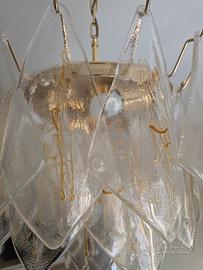 Lampadario da soffitto a sospensione di MURANO marca LA MURRINA con 34 foglie gocce romboidali di vetro realizzate a mano con intarsi trasparenti linea oro e struttura in GOLD PLATED (bagno d’oro) inalterabile come da foto.