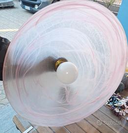 Lampadario in vetro di murano rosa vintage. l'etichetta dell'autenticità dopo tanto tempo é leggibile solo in parte. Diametro 50 cm. Perfetto in tutto.