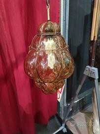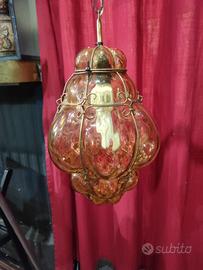 lampadario di Murano in vetro ingabbiato colore ambra,perfetto misure 40 x 28