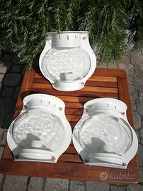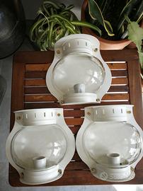 N. 3 applique retrò anni 70/80 da esterno, alluminio verniciato, portalampade in ceramica, viti chiusura in ottone