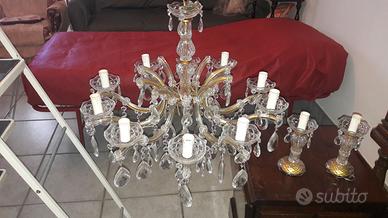 Bellissimo lampadario classico in vetro di Murano come nuovo, montato solo per fare le foto. E’ composto da dieci bracci più due lumetti per completare l’ambiente camera da letto. Volendo si può utilizzare solo il lampadario in altri ambienti. Un vero affare. Dato la delicatezza dell’oggetto il pacco, anche se il lampadario è smontato, è ingombrante per cui bisogna organizzarsi per la spedizione.
