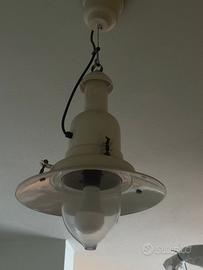 Ispirato alle lampade industriali e navali d’epoca, unisce metallo verniciato e diffusore in vetro trasparente in una forma solida, pulita e senza tempo.