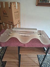 Vendo lampadario da soffitto, vetro temperato a forma di onda marina. Supporta due luci neon o led. consegna a mano zona Ovadese e ponente Genovese .