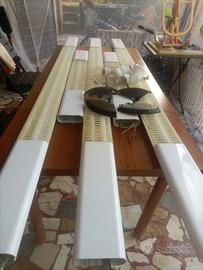 Lampadario a 5 pezzi componibili in diverse forme poiché ci sono anche 3 angolari (vedi schema possibilità di composizione). Completo di ganci a soffitto. Lunghezze pezzi 3x 220cm + 2 x 110 cm