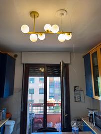 Vendo lampadario nuovo nella scatola ,in ottone di alta qualità, con paralumi in vetro bianco smegliriato, a 7 luci con LED, che consuma poco, perfetto per la cucina, sala e camera da letto..dimensioni L 65 X H 124...pallo dorato