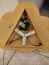Lampadario a forma di nuvola, in legno, con 3 faretti per lampadine E14, come da foto. Dimensioni: cm 52 x 38 circa.