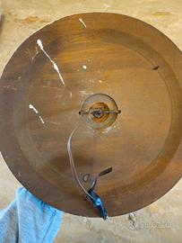 vendesi particolare lampadario da soffitto che può essere usato anche come applique, ideale per l'utilizzo con lampadine estetiche e/o colorate. porta lamapada di tipo E27. Materiale principale: legno, camapana riflettente in bronzo