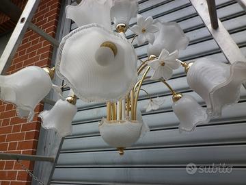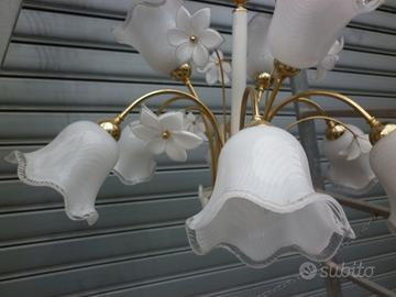 Bellissimo lampadario 10 luci con vetri e fiori un capolavoro quando è acceso, si può accendere solo una parte, o tutto. Pagato 480 euro per info solo telefono 3389242713