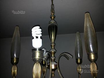 vendo questo lampadario di ottone con copri lampadine in vetro come in foto rimovibile se si vogliono mettere lampadine piu' grosse rispetto a quelle a goccia