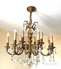 Lampadario ottone e cristallo