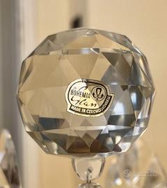 Lampadario in ottone e cristallo di Bohemia Dimensione = Altezza 105cm – Diametro 80cm 8 braccia 12 Lampade a goccia attacco E14 (11 funzionanti - 1 portalampade da sistemare) Gocce pendenti in cristallo di Bohemia Corpo in ottone lucido Tenuto benissimo Solo ritiro