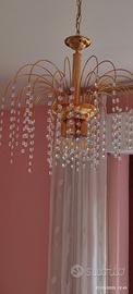 Lampadario in ottone con pendenti in vetro Swarovski, ottime condizioni (omaggio 4 lampadine usate x la lampada) e 2 abat your (questa due in omaggio) senza lampadina.
