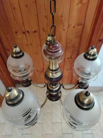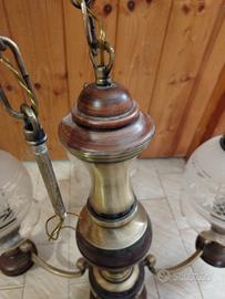 Lampadario da soggiorno molto bello ed elegante in legno con rifiniture in ottone. Ottimo per arredamento classico. Offro a chi viene a ritirarlo, perché è un delitto buttarlo, ad un costo simbolico di euro 8!