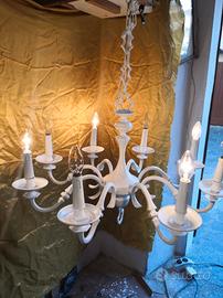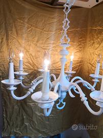 Lampadario in ottone pesante rivisitato in stile Shabby Chic o Stilnovo o Maison du Monde. Dimensioni larghezza cm. 75 altezza cm 60 catena cm 80. Otto luci. Lampadine non comprese. Attacco E14. Doppia accensione. Visto e piaciuto. Consegna a mano zona Firenze Soffiano. Per vedere altri articoli fare clic su annunci online.