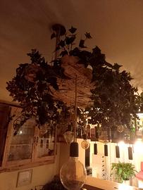 Lampadario in larice 6 lampade + 5 faretti + altri 8 sopra per illuminare il soffitto