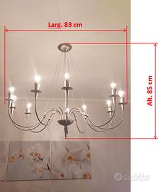 Vendo elegante lampadario della Metal-Lux a 10 braccia in sospensione, interamente in cromo-acciaio, in ottime condizioni a seguito della ristrutturazione del soggiorno. Facile montaggio sul soffitto con solo n. 2 viti (incluse con relative fischer). Tipologia di attacco lampadina: G9. Scatola di sicurezza in plastica per isolare e coprire l’attacco ai fili elettrici. Misure: altezza max 85cm. (regolabile), larghezza max 83 cm. Si valutano solo ritiri al domicilio, no spedizione. Abito a Maserà di Padova.