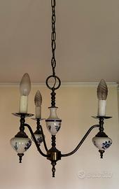 Seti di Lampadario e lampade comodino in metallo e ceramica decorata