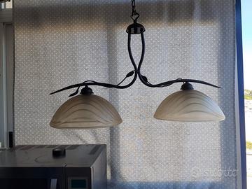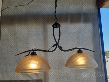 Vendo lampadario in vetro e ferro battuto, alto cm 75 compresa la catena,lungo 75 cm