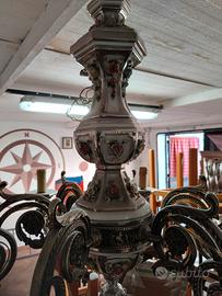 come da foto vendo lampadario in ferro battuto e Capodimonte