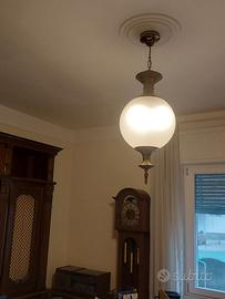 Lampadario grande, LUIGI CACCIA DOMINIONI per Azucena, in ottone satinato e vetro opaco, con la forma di un orecchino pendente Anni '60-'70. Non spedisco.