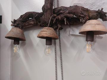 lampadario per cantina taverna bar...fatto a mano con tronchi di vigna di uva originali pezzo unico ...con lampadine a led di varie tipologie attacco e 27 . tipo di lampadario tutto in legno. volendo se ne possono fare più di uno...no perditempo grazie...
