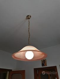 Lampadario per soggiorno in vetro con diametro di cm. 50 e particolari color oro in buonissime condizioni, ritiro a domicilio.