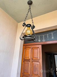 Vendesi lampadario in ferro battuto con vetro colorato perfetto per locale rustico e verande. Prezzo 30 euro