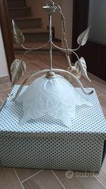 lampadario. Vetro e ferro battuto. Altezza 80 circa compresa la catena. Diametro 40.