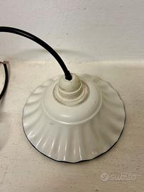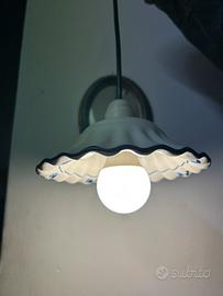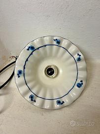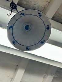 Lampadario piccolo in ceramica bianca con decori blu. Diametro 19 cm.