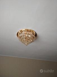 Lampadario a soffitto con montatura circolare in metallo e piramide di pendenti in cristallo. Preziosa e luminosissima. Sono presenti anche cristalli di ricambio. Luminosissima. No spedizione - ritiro in zona