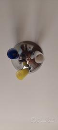 Lampadario plafoniera con tre faretti colorati. campane di vetro. Funzionante.