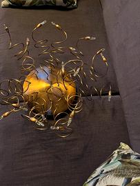Plafoniera in rame con riccioli duttili e allungabili con all’estremità lampadine puntiformi che creano un effetto stellato