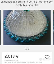 Rara plafoniera Murano anni 70 realiazzta a mano dalle vetrerie Aristiche . Pezzo raro pubblicato da piu siti sopa le 1000 eu